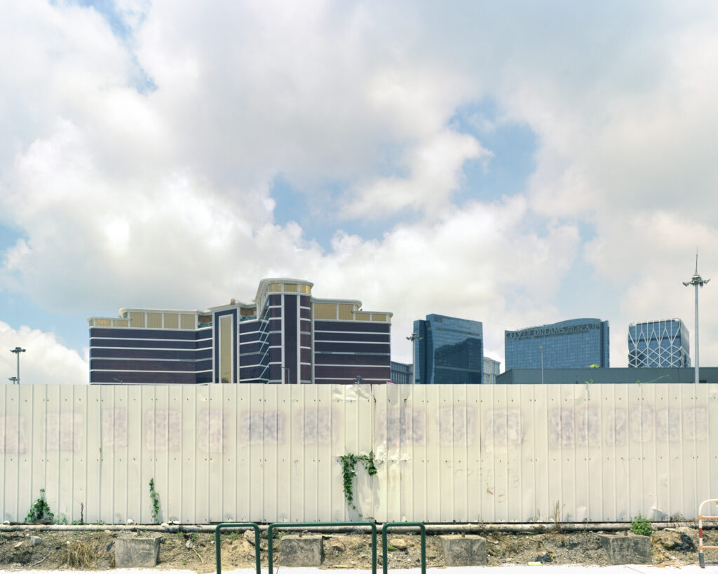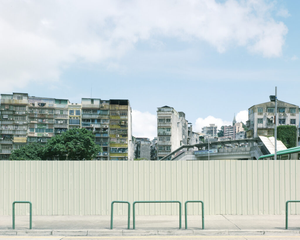 By appropriating the formal conventions of traditional landscape photography, Enclosed Landscape reframes these uniform and temporary construction hoardings as worthy subjects in their own right. These structures act as visual and physical boundaries, interrupting daily sightlines and defining limits of urban imagination. Their persistent presence at the edges of the cityscape speaks to a transitional phase in Macau’s development, one that is often hidden behind more spectacular imagery.